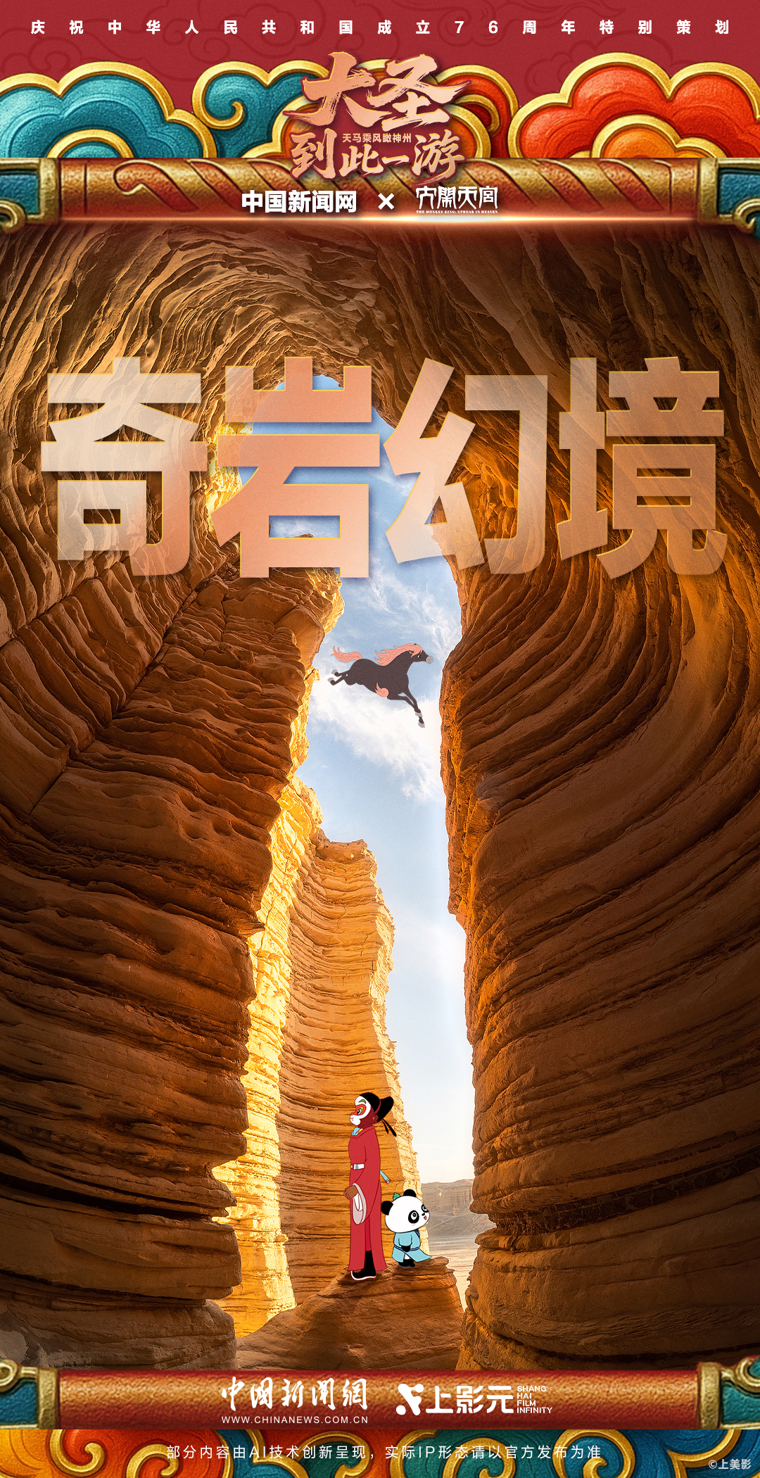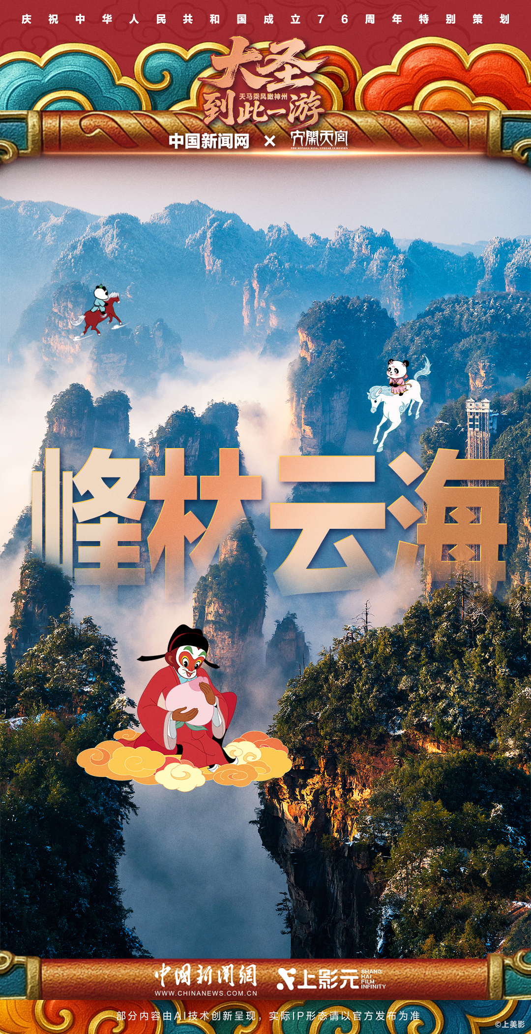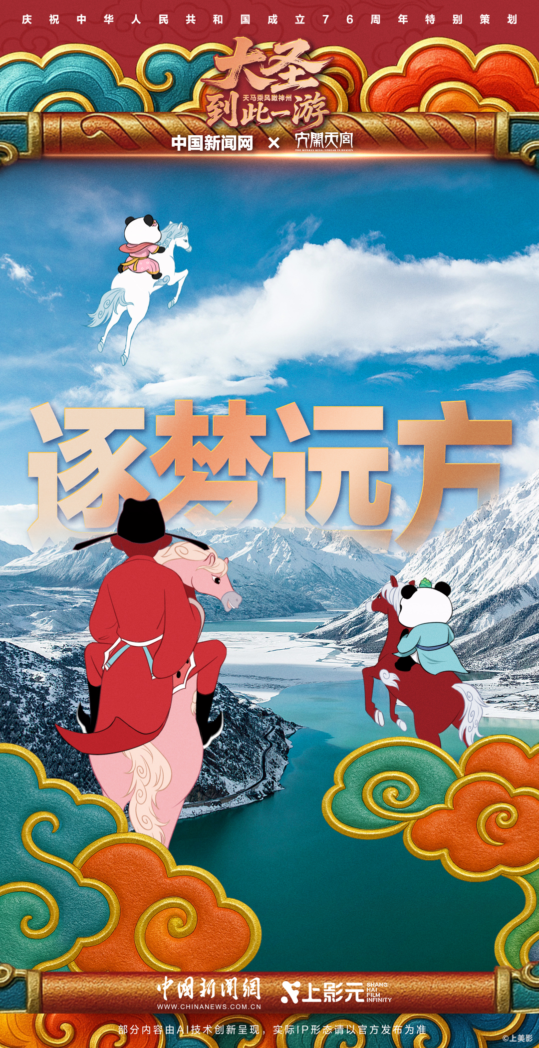 逾越时空的全天年夜圣孙悟空,骑着天马,再次动身!那1次,他带上了的年夜熊猫朋友——“启启”“心心”,一同穿梭江山湖海,挨卡年夜好华夏。 正在乱世华章里,尔们取年夜圣共游,瞧美丽中华,览绚丽江山。一同庆贺中华黎民同战邦创设76周年!